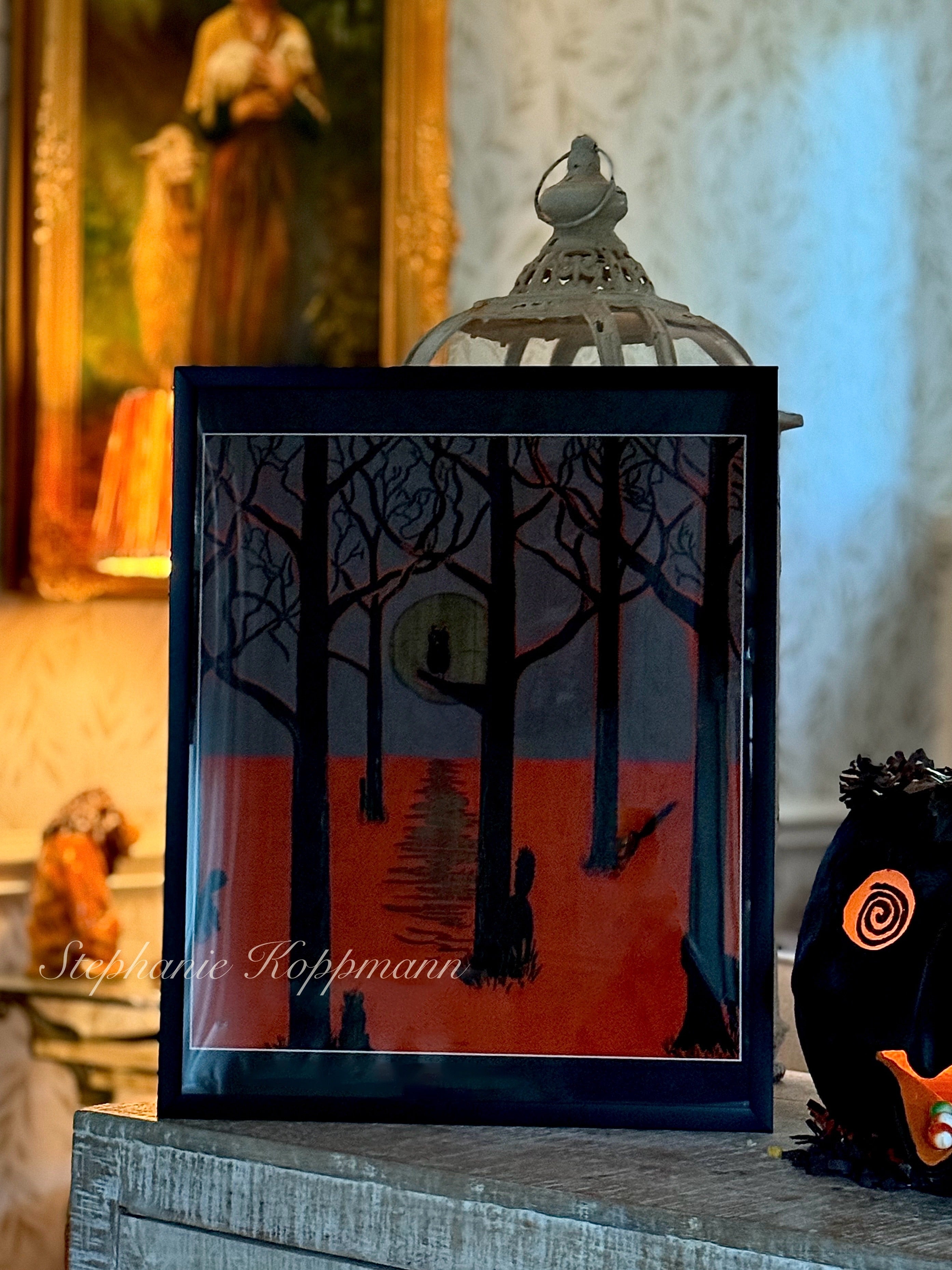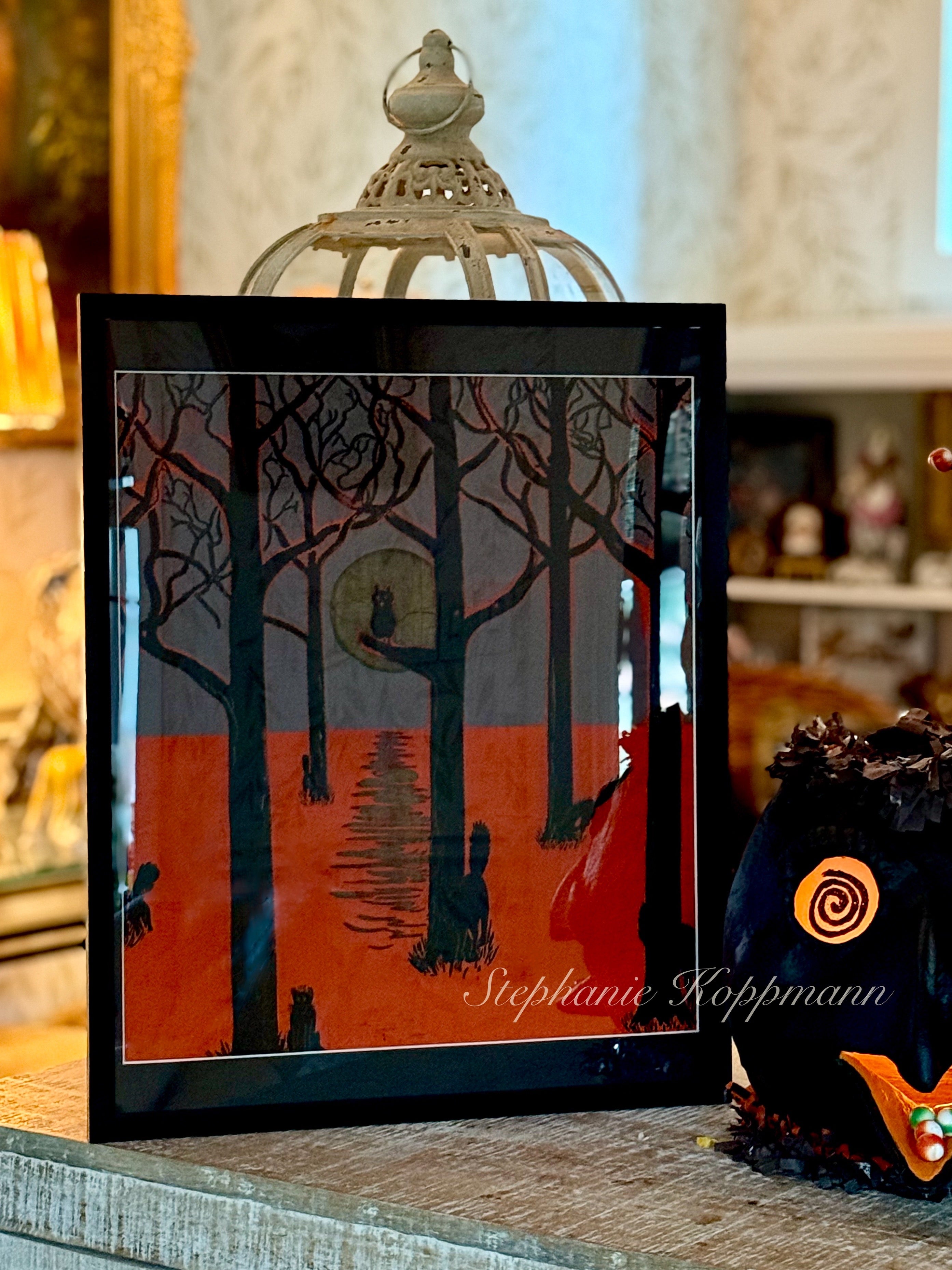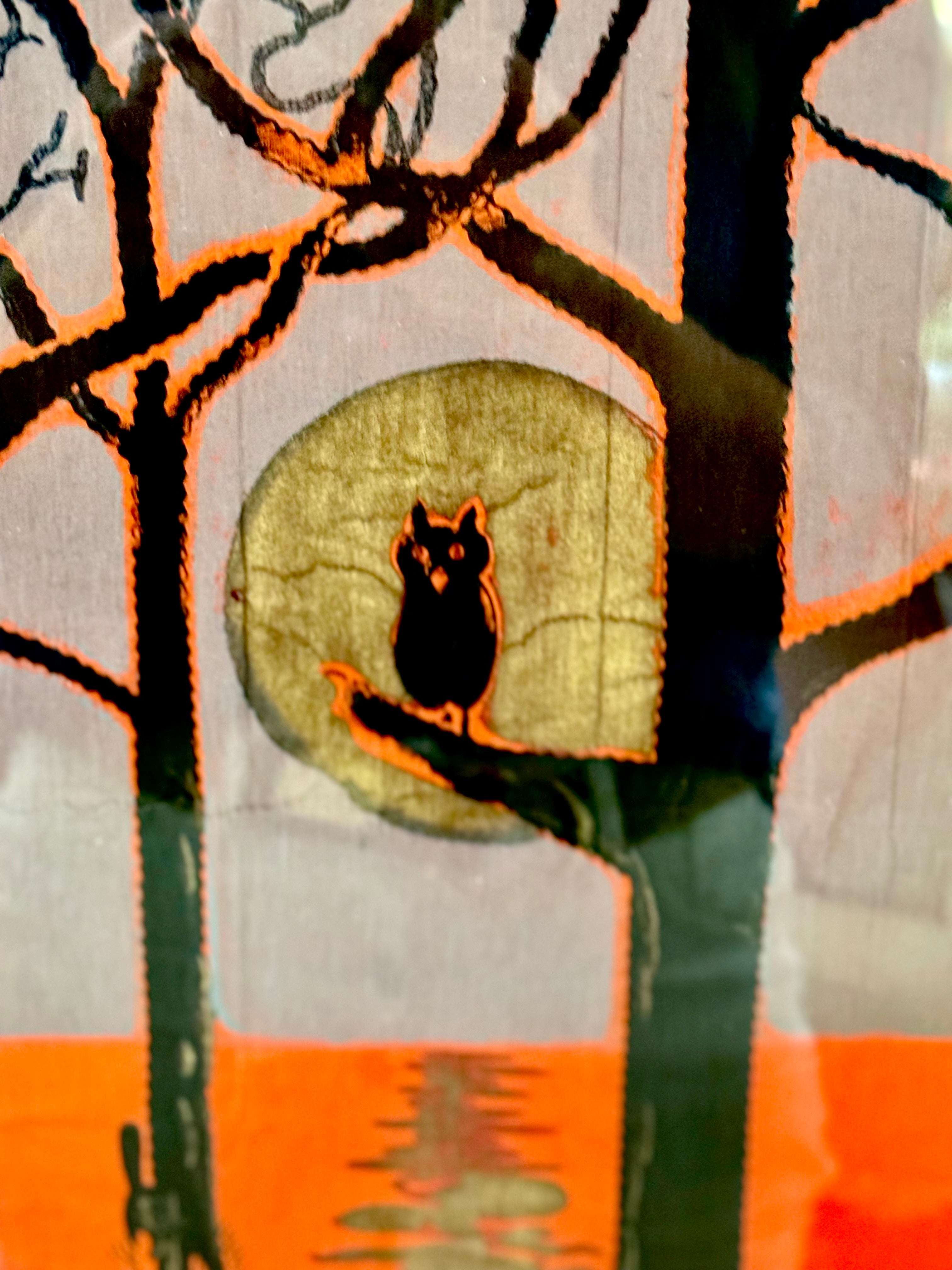 Antique Dennison Halloween Crepe Paper Panel – “midnight in the Forest”