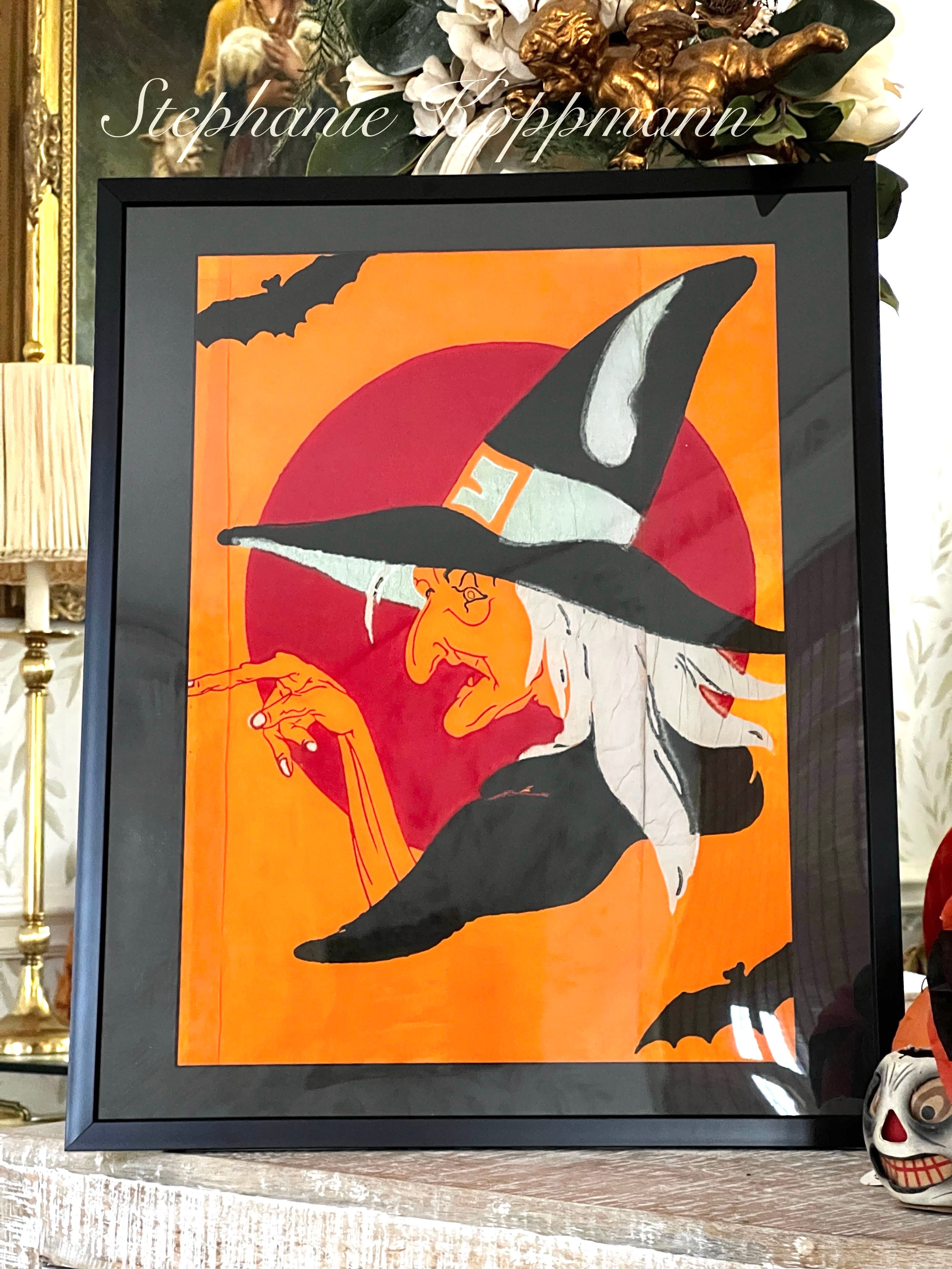 Framed and Matted Antique Dennison Mfg. Co. Crepe Paper Art – Witch Silhouette