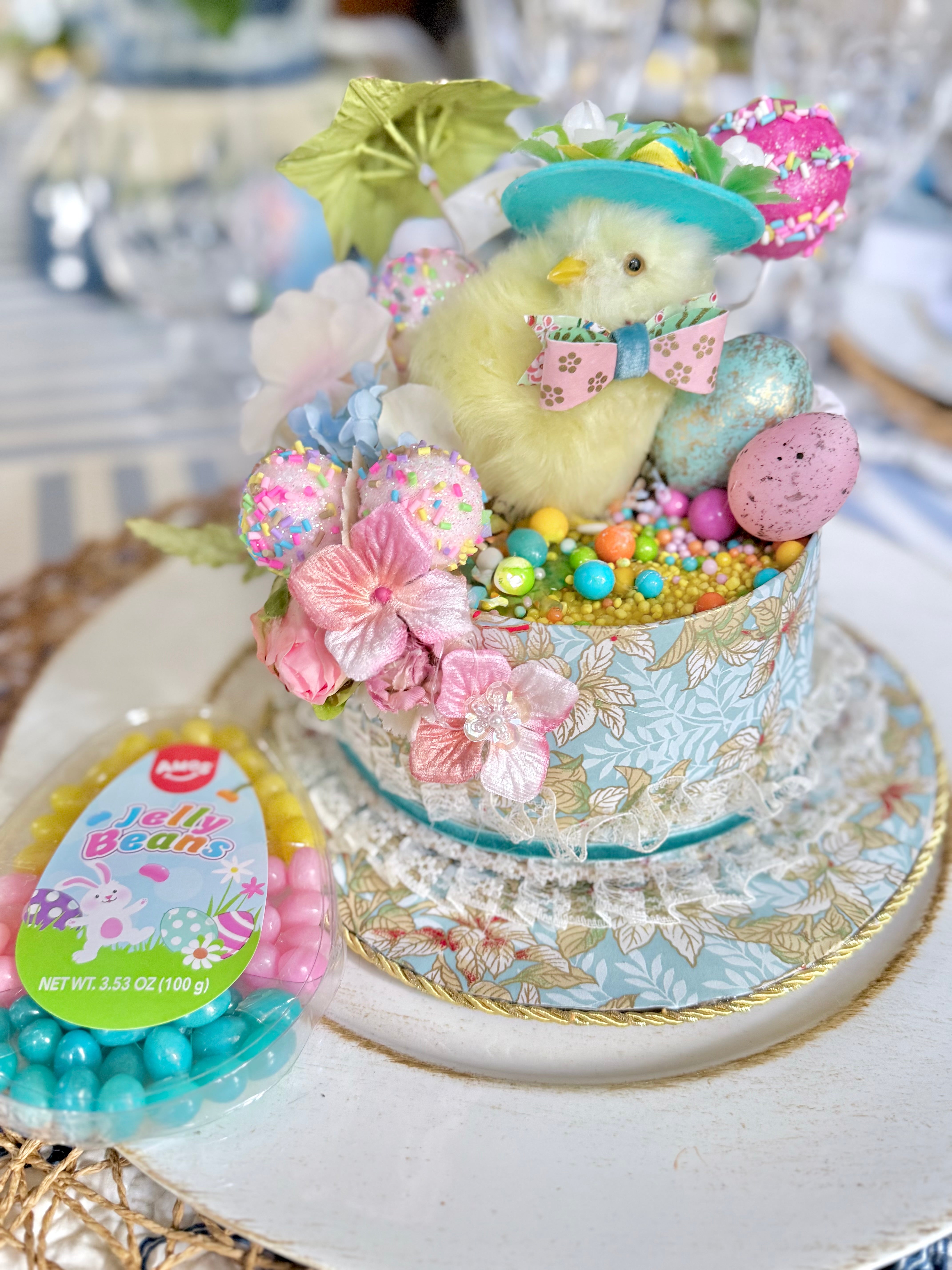 Once upon a time, in a cheerful little shop (my cluttered workshop) filled with whimsy, some darling cake Easter hat candy containers were about to make their grand debut! π©πΈ all of my cakes are meant to have corresponding cupcake chicks to match for your table please check out my chirping chicks.Β