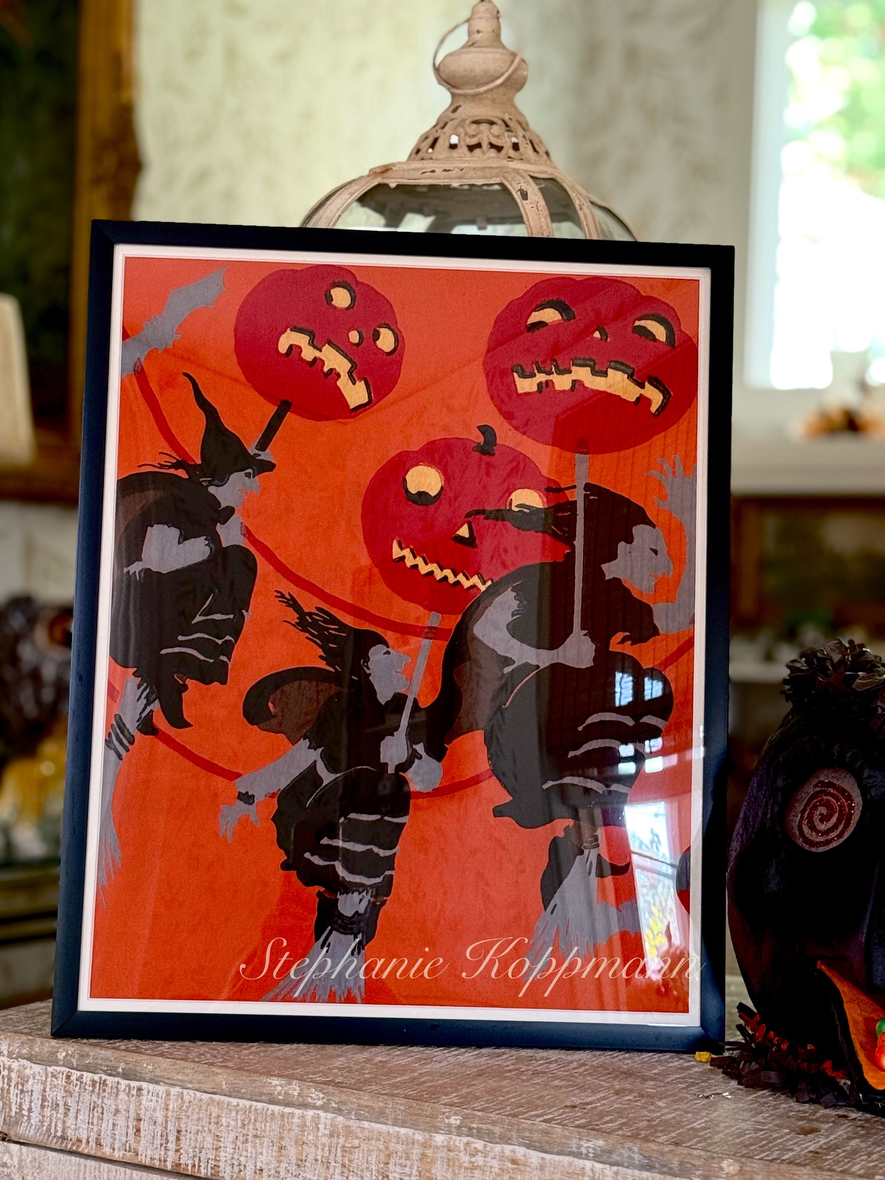 Professionally matted and framed under high quality polycarbonate plexiglass, this piece maintains remarkable clarity and saturation for its age. It stands as an outstanding example of the ephemeral art that defined Dennison’s early Halloween catalogues—now nearly impossible to find intact.