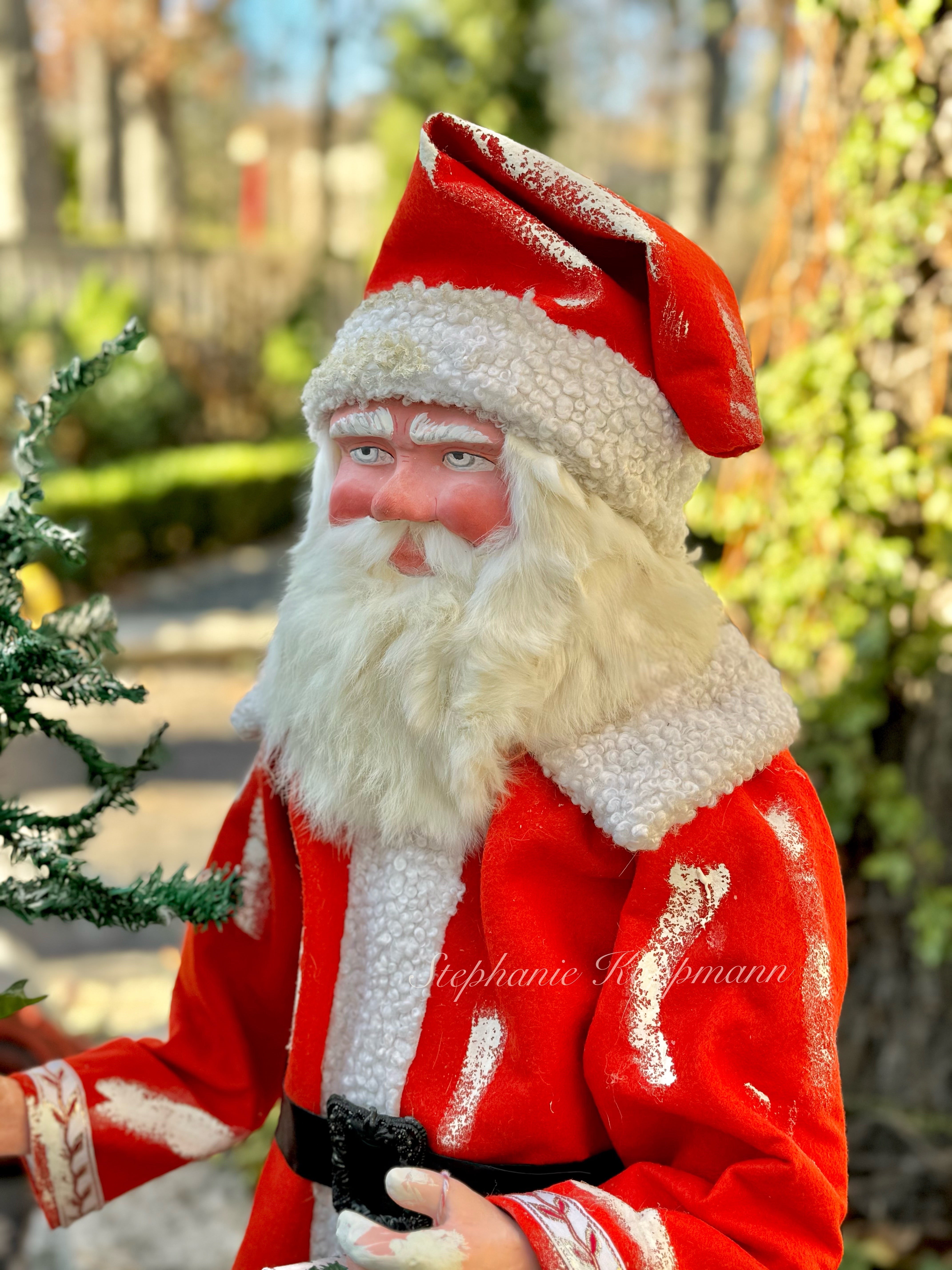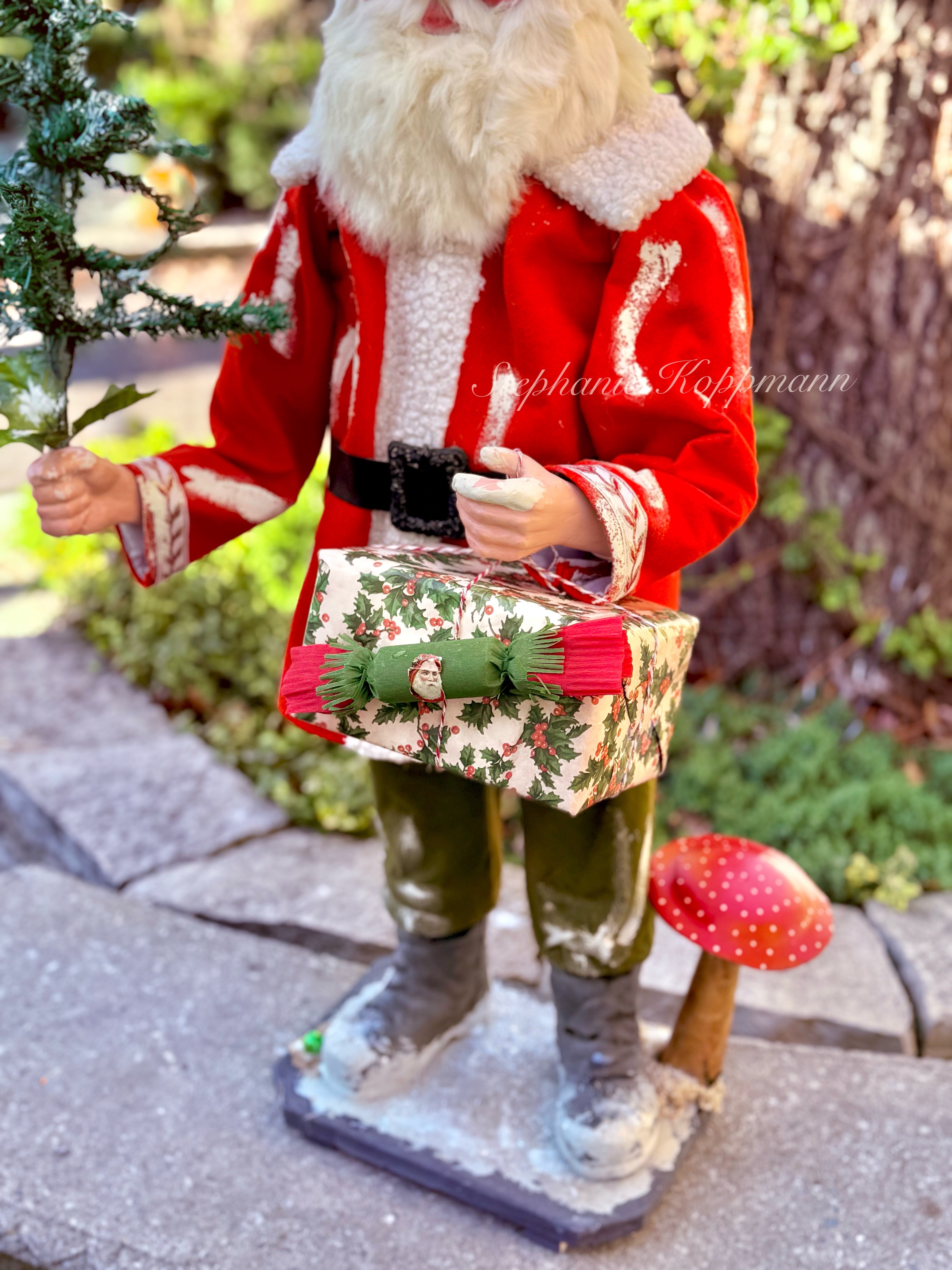 And now, this beautifully handcrafted Santa — recreated in the cherished style of the 1920s German originals by artist Stephanie Koppmann — continues that legacy. His rosy cheeks, inquisitive eyes, and forest companions recall an era when Christmas was crafted by hand and magic was believed with all one’s heart.